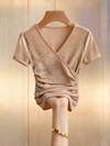 Everyssa Women's Casual Asymmetrical Bow Decor T-Shirt, Summer