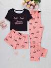 Tween Girls Bowknot & Rabbit Print Silk-Like Fabric Short Sleeve Top & Shorts 2 Pieces Comfy Pajama Set