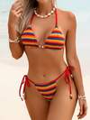 Swim Mod Women's Sweet Geometric Striped Contrast Color Vacation Swimsuit, Swimsuit Set, Spring/Summer