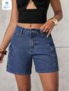 SHEIN PETITE Women's Casual Pocket Distressed Raw Hem Denim Shorts