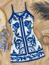 Tween Girls Dresses Blue And White Porcelain Pattern Print Floral Print Casual Vacation Cami Dress,Leisure Vacation, Beach, New Fashion Styles