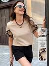 Aloruh Khaki-Colored Asymmetrical V-Neck Short-Sleeved Top Formal Occasion, Special Occasion Summer Wedding Re-Wearable Comfortable Modest Elegant, Chic Vacation Outfits Going Out