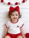 SHEIN 6M-3T Infant/Baby GirlCherry Letter Graphic Round Neck Floral Trim White Short Sleeve Pullover T-Shirt, Infant/Toddler Clothing, Girls' Pullover, Girls' Short Sleeve T-Shirt, Girls' White Versatile Short Sleeve, Trim Craftsmanship At Collar And Sleeve Hem, Cherry Element, Fruit Element, English Element, Suitable For Spring/Summer, Summer