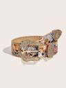 1pc Vintage Western Style Women's Belt With Beaded And Oval Buckle, Suitable For Retro Accessories, Suitable For Campus, Daily, Party, Gathering, Daily Accessories