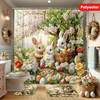 1/4 Pcs Easter Decor Shower Curtain Set - Rabbit Easter Egg Basket Floral Bright Green Pink White Cute Fun - Washable Spring Bathroom Shower Decor Gift Home With 12 Hooks Non-Slip Bathroom Mat U-Shaped Toilet Seat Cover