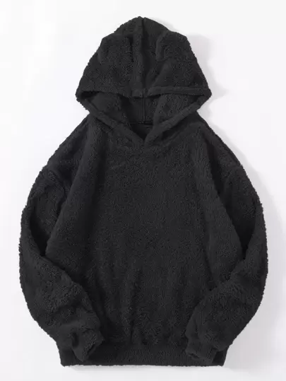 SHEIN Unity Drop Shoulder 3D Ear Teddy Hoodie,Long Sleeve Tops Graduation,Back To School Outfits,Graduation,Teacher Outfits For Women,Back To School Pullover Fall Outfit - Black - View 1