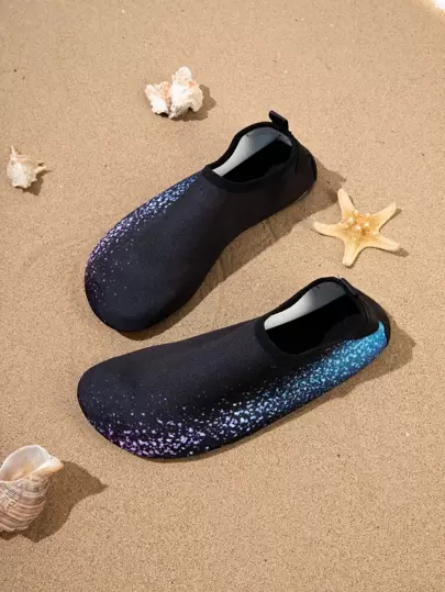 Graphic Slip On Aqua Socks, Low-cut Black Sports Water Shoes For Women With Contrast Colors, Elastic Design - Black - View 1