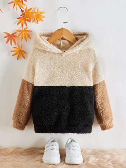 SHEIN Young Boy's Color Block Hooded Long Sleeve Sweatshirt, Suitable For Casual Daily Wear In Autumn/Winter - Multicolor - View 1