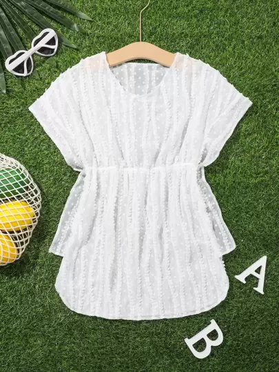 Girls Swiss Dot Contrast Trim Cover Up - White - View 1