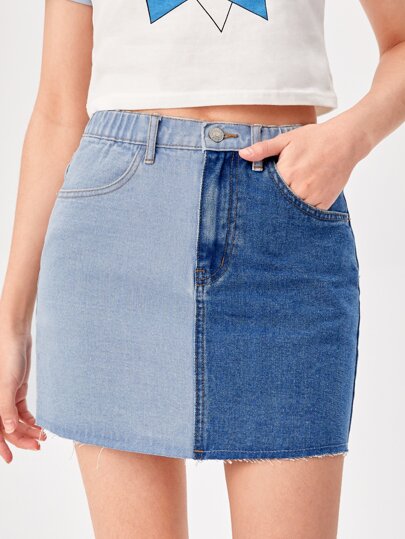 SHEIN Teen Girls Color Block Denim Skirt - Medium Wash - View 1