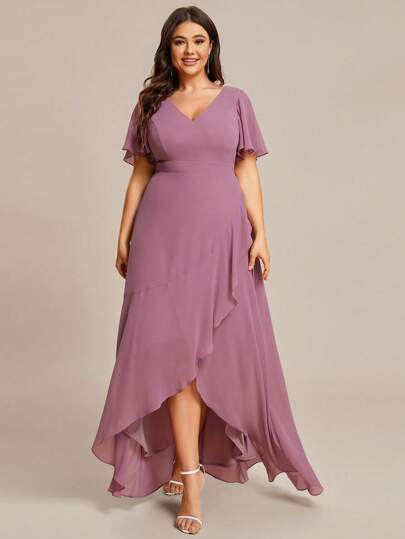 Plus Butterfly Sleeve Wrap Hem Chiffon Bridesmaid Dress - Dusty Pink - View 1