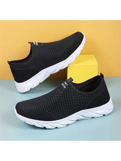 Men's Casual Breathable Sport Shoes, Lightweight Mesh Air Holes Comfortable Versatile Walking Sneakers, Plus Size - Black and White - View 1