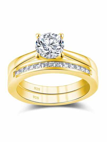 AIHUASI 2pcs/Set Elegant 925 Sterling Silver Yellow Gold Color Wedding Rings Bridal Set For Women 6.5*6.5mm 1.0 Carat Brilliant Dazzling Round Cut AAAAA Cubic Zirconia Solitaire Engagement Ring Fine Jewelry Valentines Gift - Yellow Gold - View 1