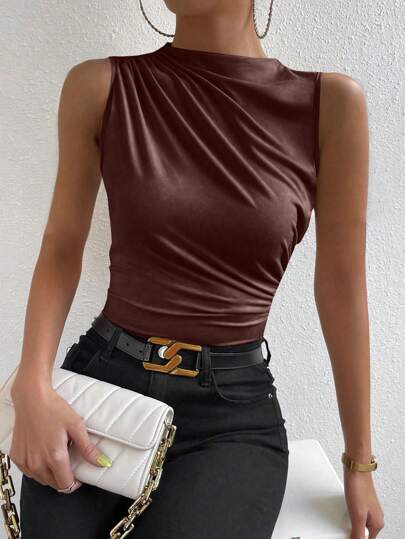 Chiquease Solid Ruched Tank Top - Brown - View 1