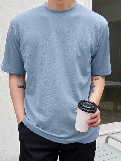 DAZY Men Solid Round Neck Tee Summer - Baby Blue - View 1