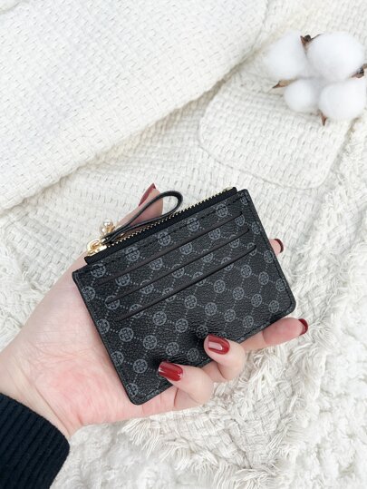 Stone Pattern Alligator Print PU Portable Zipper Ultra-Thin Minimalist Small 6-Card Pack Multi-Card Purse Fashion Short Wallet Simple Daily Use Card Holder Card Holder Wallet Business Card Holder Credit Card Holder Card Holder Women For Women Mini Wallet Card Wallet - Black - View 1