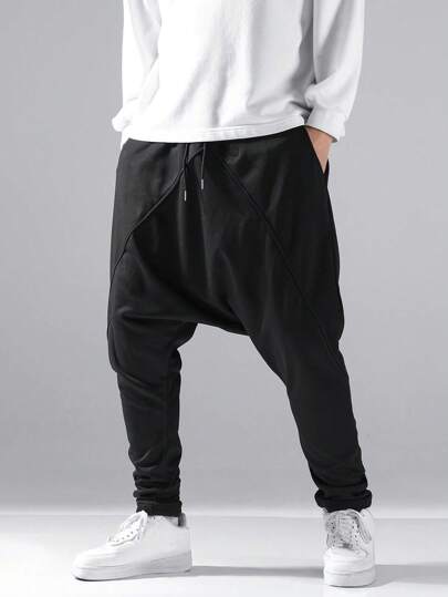 Manfinity Homme Loose Fit Men's Solid Color Drop Crotch Sweatpants Long Flare Joggers Plain Black Going Out Casual - Black - View 1