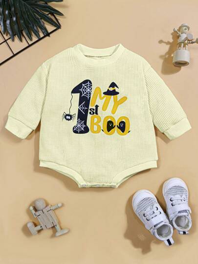 Baby Girls Letter Graphic Ribbed Knit Bodysuit - Apricot - View 1