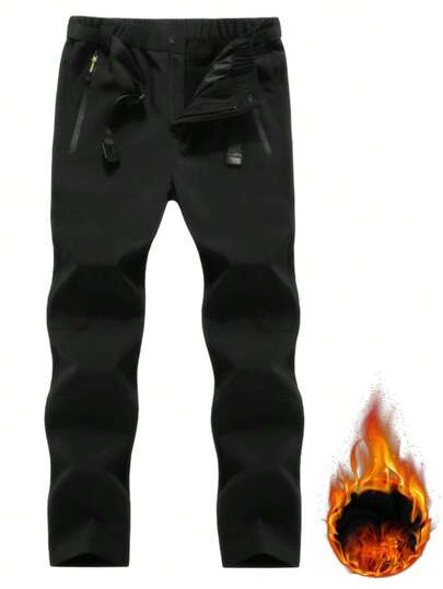 Men's Outdoor Hiking Pants, Soft Shell Fleece Waterproof Breathable Thick & Warm Climbing Trousers For Winter Skiing - Black - View 1
