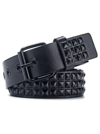 Street 1pc Square Bead & Pyramid Studs Decor Punk Style Unisex Leather Belt, Suitable For Daily Wear Halloween Summer, School Fall, Autumn, Halloween - Black - View 1
