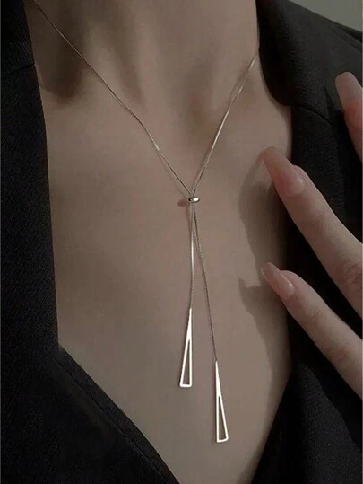 FOREVER QUEEN S925 Sterling Silver Long Adjustable Pull-Out Long Necklace Women's Gifts To Girlfriend Fashion Personalized Simple Wedding Decoration Chai Necklace Mother Day Gift - Silver - View 1