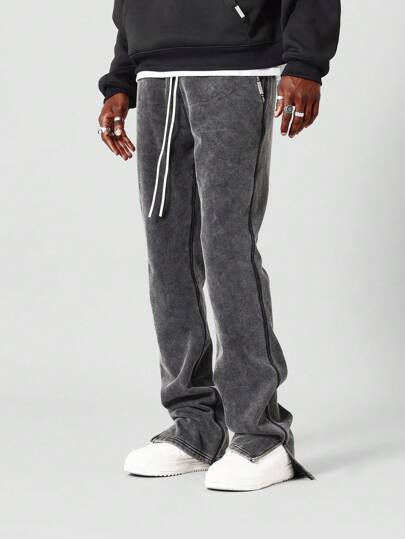 SUMWON Athletic Drawstring Side Split Sweatpants Relaxed Fit Winter Fall Loungewear Comfortable Athleisure Side Stripe Jogger Pants Gym Training Workout - Dark Grey - View 1
