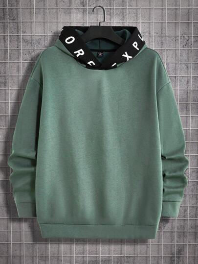 Manfinity VCAY Men's Plus Size Color Blocking Letter Panel Hoodie And Knitted Joggers Set, Casual Sportswear, For Fall Winter - Multicolor - View 1