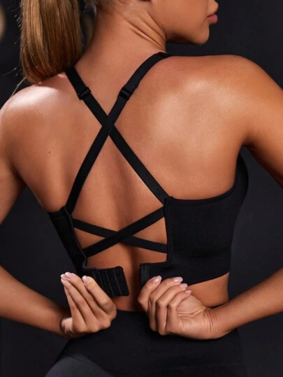 Easithlete Seamless Yoga Sports Bra With High Support, Cross Back Design, Adjustable Straps, Suitable For Daily Workout - Black - View 1