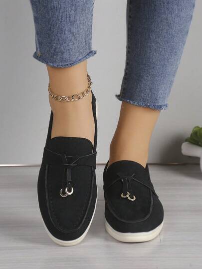 Women's Comfortable And Fashionable Round Toe Slip-On Loafers With Low Flat Heel, New Multi-Color And Black Penny Loafers, Leisure Soft Sole Comfortable Shoe - Black - View 1