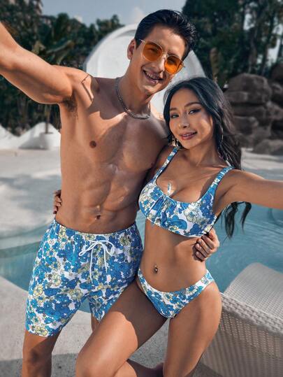 Surfspeed Men'S Floral Print Drawstring Beach Shorts - Multicolor - View 1