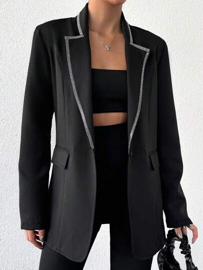 EURMUSE Women'S Single-Breasted Long Sleeve Blazer - Black - View 1