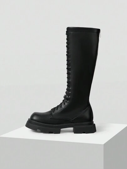 MOTF PREMIUM ROUND TOE LACEUP THICK PLATFORM WOMEN'S KNEEHIGH BOOTS - Black - View 1