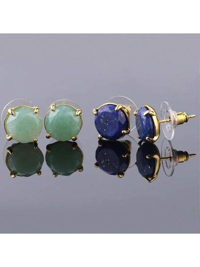 1 Pair  Natural Stone Stud Earrings Round Pink Crystal Quartz Gem Beads Gold-Color Simple Earring For Women Girl Charm Jewelry F693 - Stud Earrings - View 11