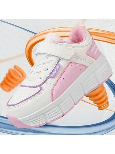 New Roller Skates With Detachable Two Hidden Wheels, Pink Buttoned Skate Shoes For Girls, Outdoor Skating Shoes For Students - Pink - View 1