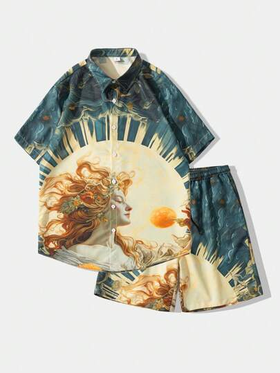 LAURA BARREIRO Vacation Men 2pcs/Set Casual Short-Sleeve Shirt And Shorts With Artist Print, Suitable For Spring And Summer, Holiday, Festival, Ibiza Fits - Multicolor - View 1