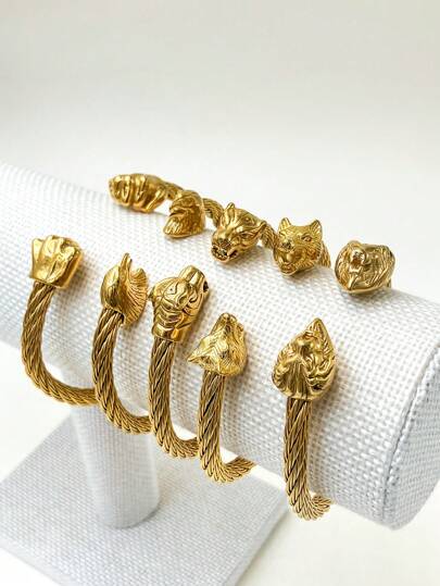 Mazuer One 18K Gold Stainless Steel Ancient Asian Style Animal Head Bangle Bracelet With Retro Vintage Charm, Summer High-End Design, Suitable For Dates, Gifts, Festivals, Parties, Daily Wear, Commuting, And Vacations - Yellow Gold - View 12