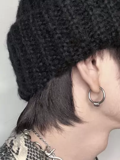 Fashionable and Popular Men Ring Decor Hoop Earrings Stainless Steel Punk Hip Pop Style for Jewelry Gift and for a Stylish Look - Silver - View 4