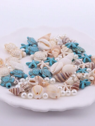 40g Random Fashionable 3D Ocean Themed Bead Mix Including Shell, Faux Pearl, Turquoise, Turtle, Starfish For DIY Bracelets And Earrings Accessories - Multicolor - View 1
