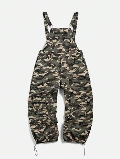 Manfinity VCAY Men's Casual Camouflage Pattern Woven Suspender Trousers - Green - View 1