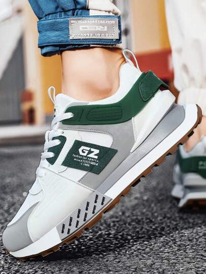 Fashion Colorblock Thick Sole Men's Chunky Sneakers, Fashion Breathable Comfortable Men's Athletic Shoes, Height Increasing Lace-Up Men's Running Shoes For Outdoor - White - View 1