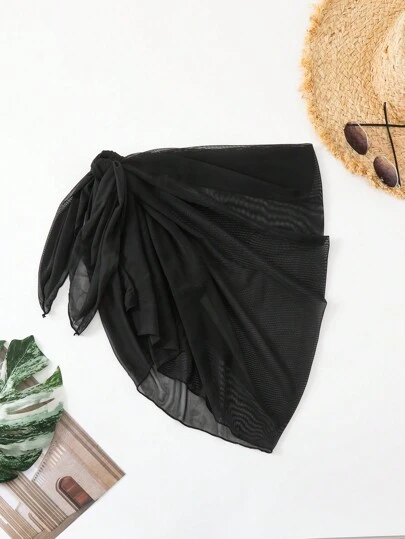Swim Vcay Plus Size Summer Beach Solid Color Mesh Sheer Cover Up Skirt - Black - View 1