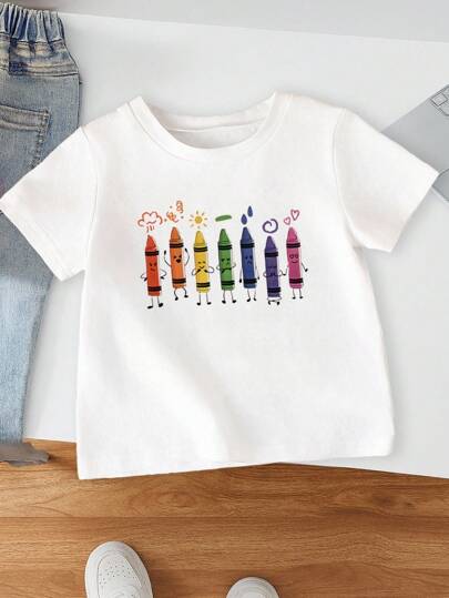 Summer Baby Girl Cartoon Watercolor Pen Print Round Neck Short Sleeve Casual T-Shirt - White - View 1