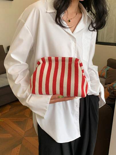 Striped Contrast Color Clutch Suitable For Women Daily Use, Perfectly Matching With Prom Accessories - Red - View 1