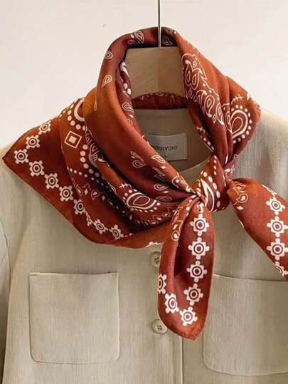 1pc Paisley Printed Linen Square Bandana For Women , Sun Protection Headscarf Scarf Multifunctional Headwrap Fashionable Neckerchief Winter Fall - Multicolor - View 1