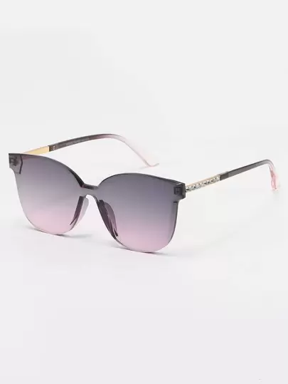 1pc Geometric Frame Rhinestone Rimless Decorative Women's Sunglasses, Elegant Outdoor Sunglasses, Beach Sunglasses For Women, Beach Accessories, Sun Protection For Outdoor, Travel, Summer Beach Vacation - Ombre - View 1
