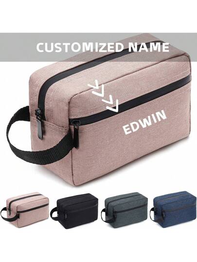 1pc Custom Logo  Travel Toiletry Bag For Women And Men, Water-Resistant Shaving Bag For Toiletries Accessories, Foldable Storage Bags With Divider And Handle For Cosmetics Brushes Tools - Pink - View 1