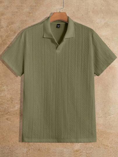 HIMLAND Men's Casual Loose Knit Drop Shoulder Polo Shirt With Turndown Collar, Short Sleeve Men Polo Shirt Knitted Polo Shirt Men Textured Polo Shirt Short Sleeve Polo Shirt - Green - View 1