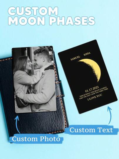 1pc Customized Photo Wallet Card, Can Customize Moon Phase Wallet Insert Card, Can Customize Text Wallet Card, Gift For Husband Or Boyfriend, Anniversary Gift, Personalized Photo Wallet Card, Suitable As Valentine's Day Gift For Boyfriend, Motivational Gift, Anniversary Gift, Groomsman Gift, Valentine's Day Or Father's Day Gift For Husband Or Boyfriend - Multicolor - View 1