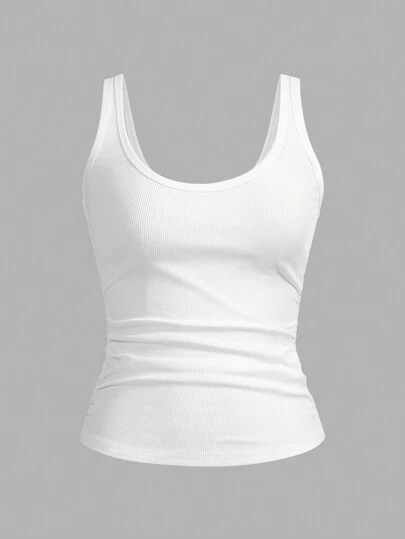 SHEIN Tall Casual All-Match White Cami Top With Deep U-Neck And Racerback - White - View 5