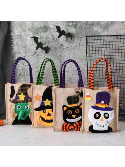 1pc Halloween Non-Woven Tote Bag,Candy Bag,Pumpkin Bag,Decoration Props,Gift Bag,Halloween Supplies - Multicolor - View 1